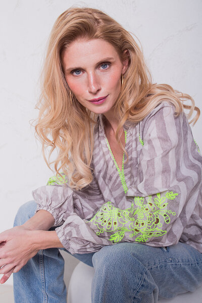 Das Contemporary Mainstream Blusenlabel mit der original Elfe. Die Bluse